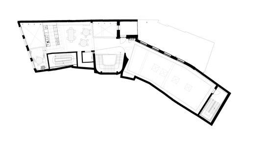 The flexible and modular concept allows the space to be static and adaptable to different occasion. The outdoor square flooring in stone continues inside, producing one overall urban landscape.